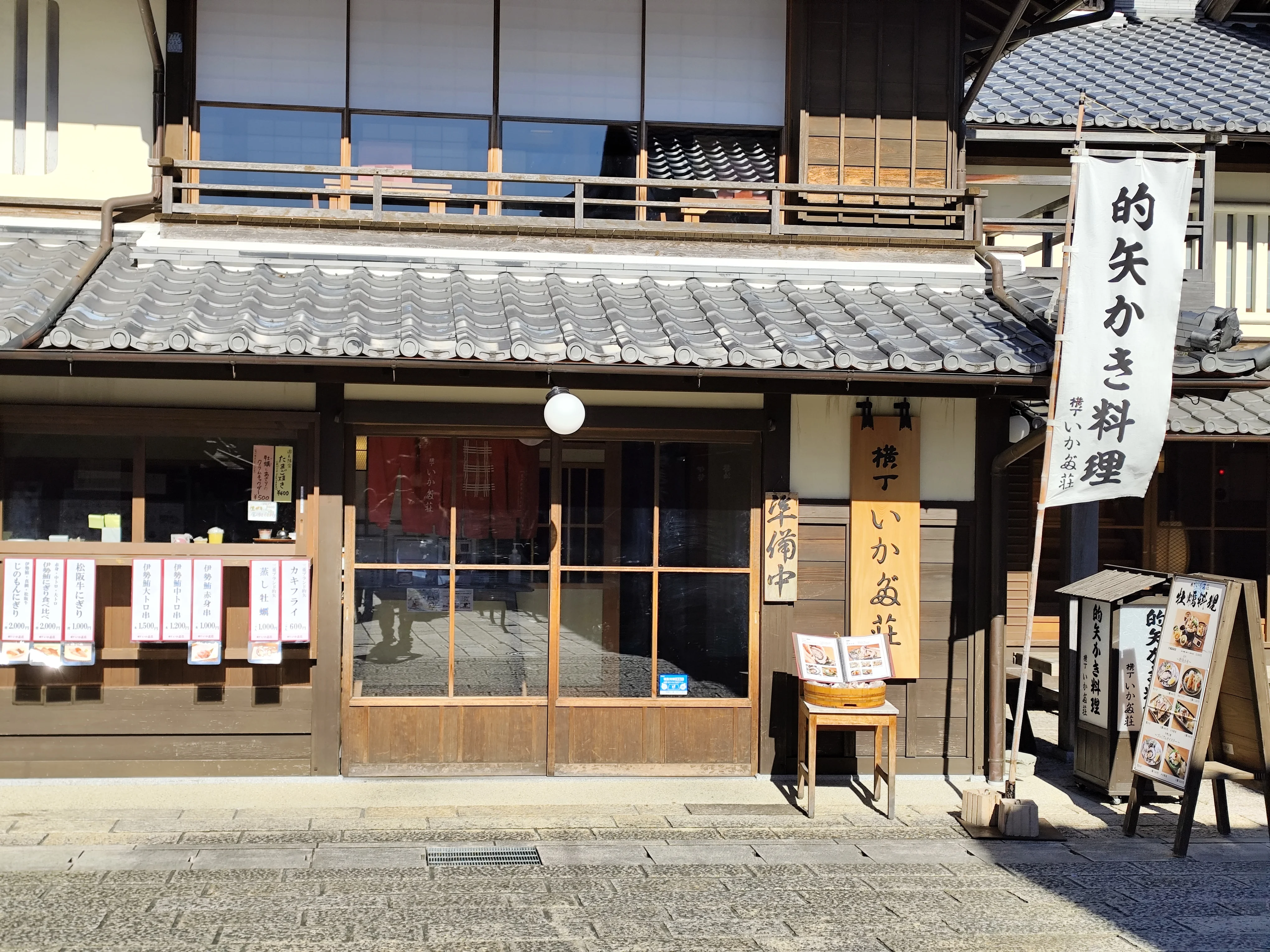 志摩市的矢にある牡蠣料理の老舗旅館「いかだ荘」の直営店。「伊勢志摩プレミアムオイスター」などの生牡蠣やカキフライを提供している。